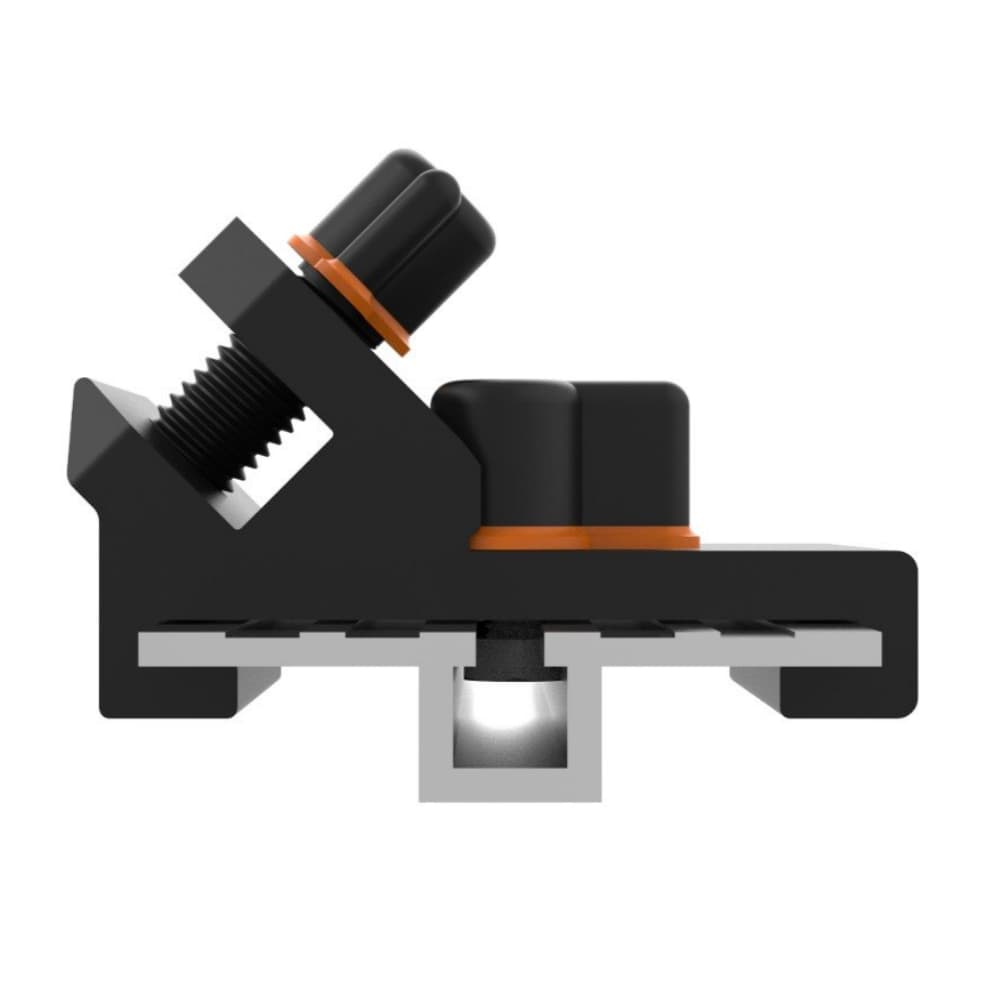 Produsul se ancorează direct în profilul de aluminiu al mesei printr-un șurub manual și oferă un control mai bun asupra pieselor sensibile la vibrații, deplasare sau fisurare. Pentru benzi mai lungi, se recomandă utilizarea mai multor puncte de sprijin distribuite uniform pe lungime.