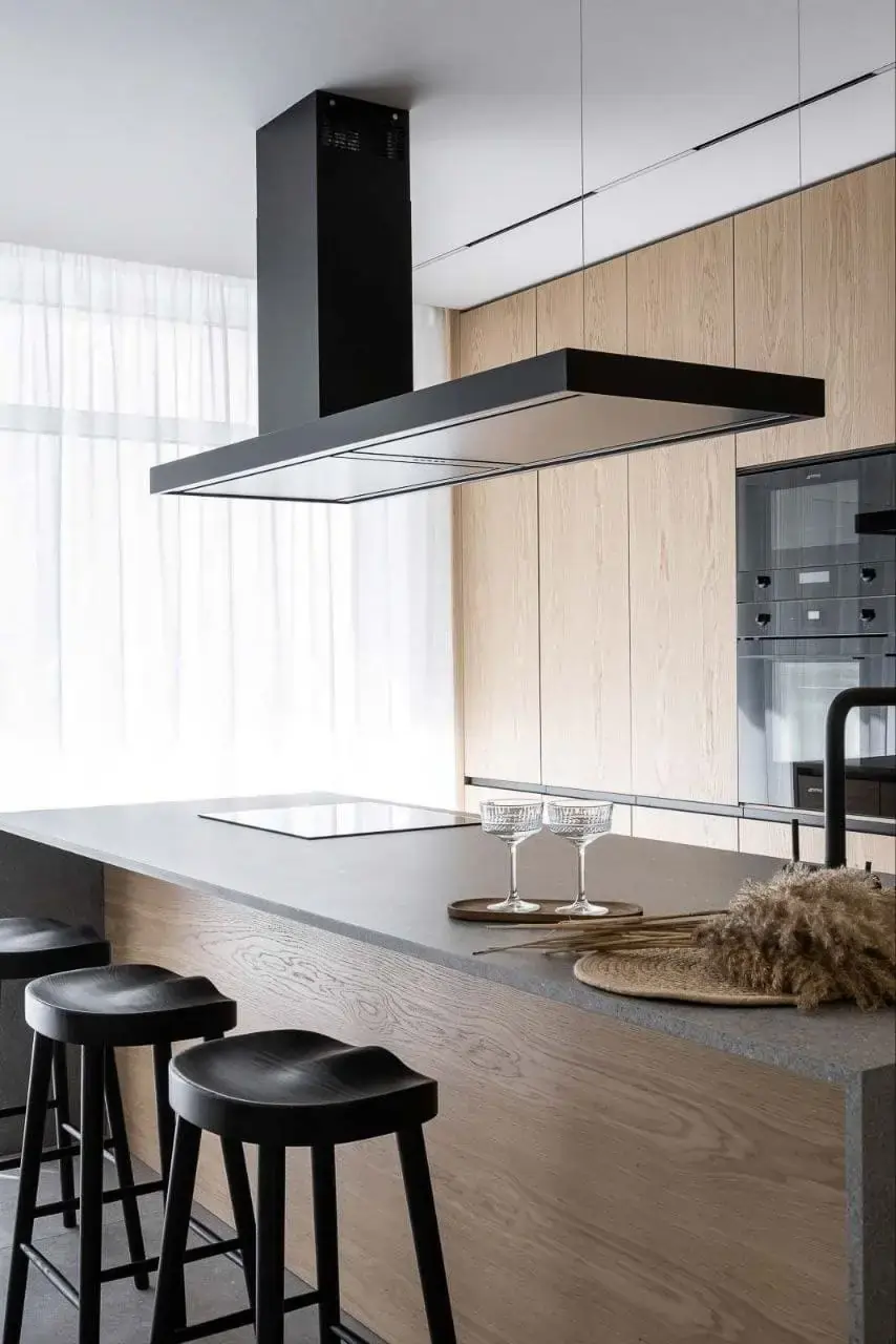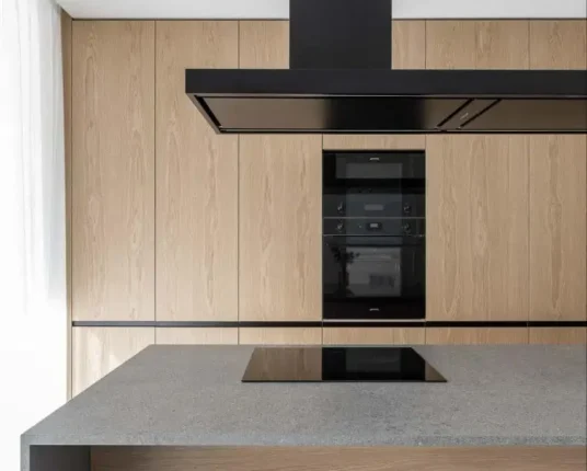 Am implementat soluții tehnice ascunse, care permit păstrarea esteticii interiorului fără a face compromisuri în ceea ce privește funcționalitatea. Elementele de ventilație sunt integrate în structură, iar toate detaliile tehnice sunt ascunse cu grijă în spatele fațadelor curate.