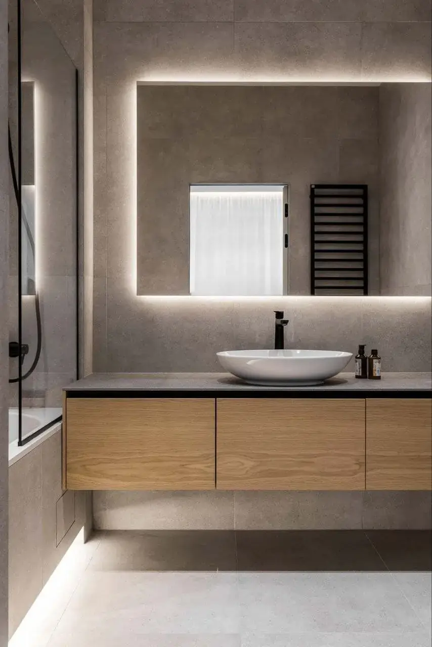 Un interior modern, în care fiecare detaliu este gândit până în cele mai mici amănunte: linii curate, materiale naturale și soluții tehnice care rămân invizibile, dar care definesc confortul.