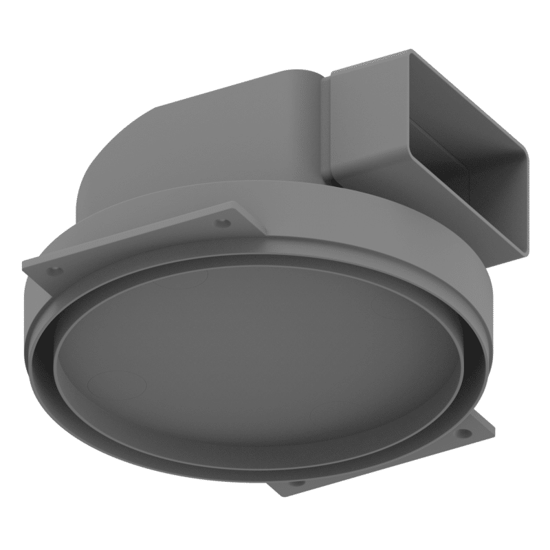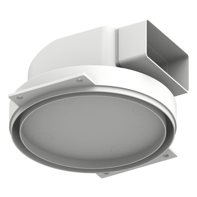 Благодаря угловому подключению к прямоугольному каналу 55×110 мм и небольшой глубине монтажа всего 11 см, эту систему можно установить даже в ограниченных пространствах. Она может работать как в активной версии (с встроенным вентилятором), так и в пассивной версии (диффузор без мотора, для естественной тяги или централизованных систем).